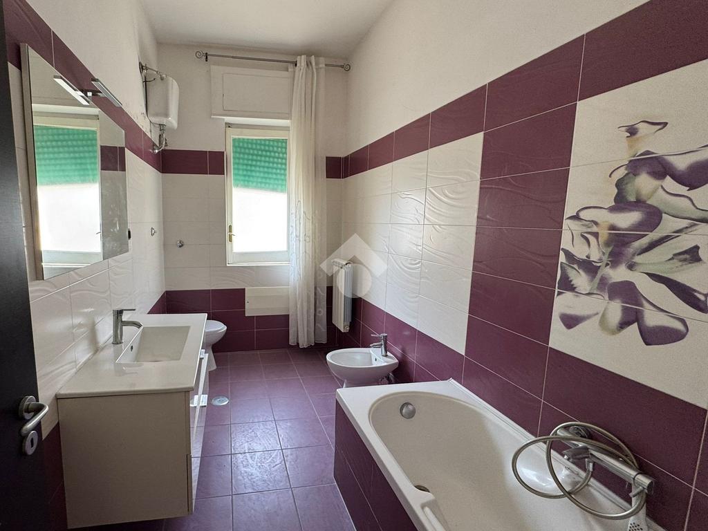 La soluzione si apre su un luminoso doppio salone con finestra, prosegue con un corridoio che conduce alla cucina abitabile con balcone, e un disimpegno che distribuisce tre camere da letto, tutte con uscita sul secondo balcone con affaccio verso il mare. Presenti inoltre due bagni, entrambi finestrati e un comodo ripostiglio . Completa la proprietà la possibilità di acquistare, separatamente , un comodo box auto di circa 16mq situato nello stesso fabbricato, all'interno del parco. Prezzo richiesto per il box:40.000.